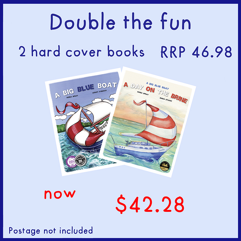 Double the Fun provides you with one hard cover copy each of A Big Blue Boat and A Day on the Brine and offers you double the fun. Postage is included.